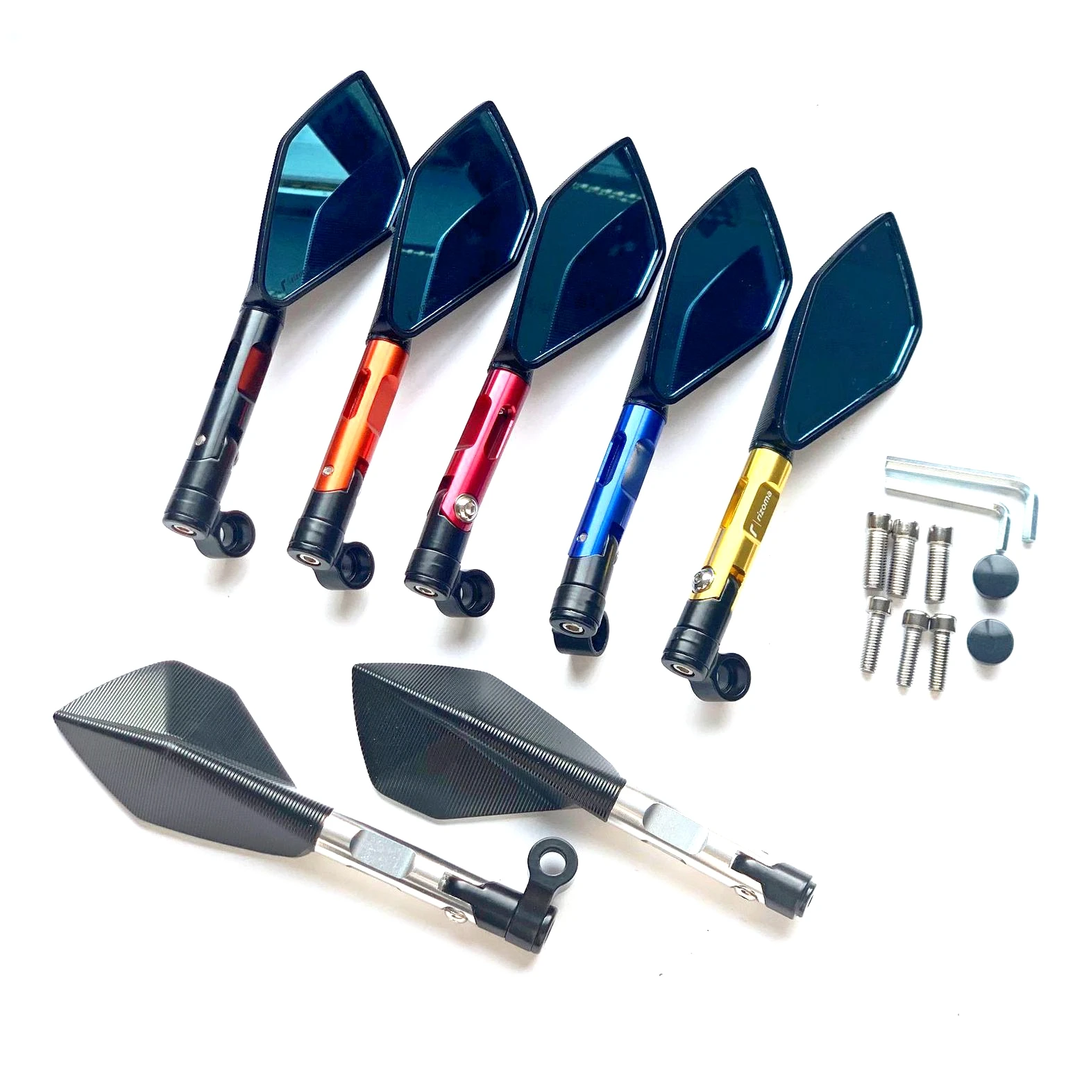 STLF Motorcycle Modified Rearview Mirror Diamond Short Rod Rear View Mirror CNC Aluminum Alloy Universal