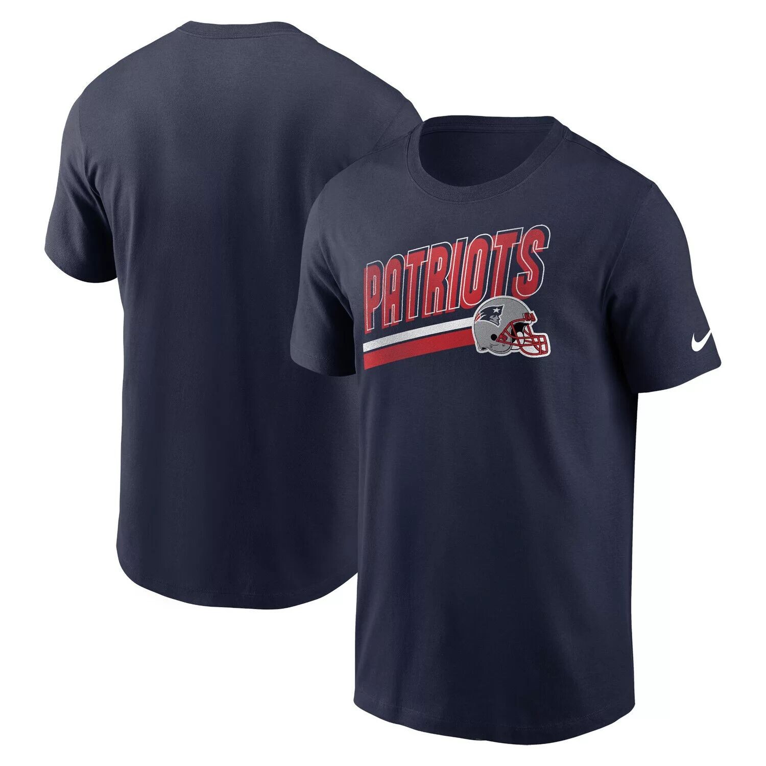 Мужская темно-синяя футболка New England Patriots Essential Blitz Lockup Nike, Синий, Мужская темно-синяя футболка New England Patriots Essential Blitz Lockup Nike