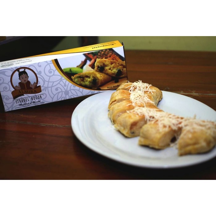 Strudel Bogor merupakan kudapan sejenis pastry atau roti yang merupakan perpaduan antara kuliner tradisional Austria dengan kuliner khas Bogor. Strudel sendiri adalah sebuah jenis pastri berlapis yang biasanya diisi dengan manisan. Strudel sudah populer sejak abad ke-16 dan selalu dikaitkan dengan makanan dari Austria. Di Indonesia, strudel terkenal dengan oleh-oleh dari kota Malang. Biasanya, strudel Malang berisi berbagai buah-buahan salah satunya buah apel. Tapi, kalau kamu ke Bogor, kamu akan menemukan strudel yang berbeda dari yang biasa kamu bisa temukan di kota Malang. Strudel Bogor Almira ini punya cita rasa khas Bogor diantaranya strudel dengan varian rasa sbb:
