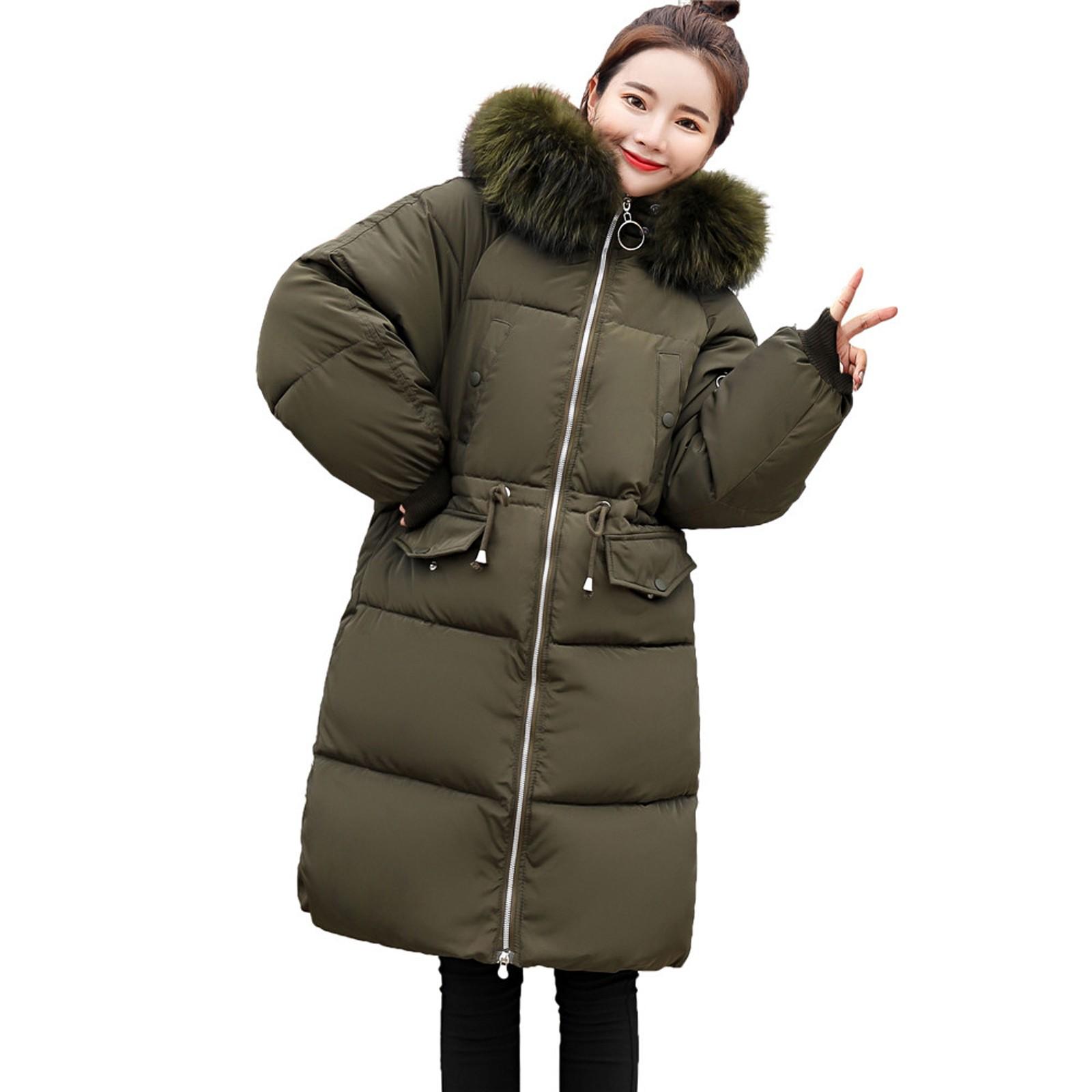 (SU)Женская мода с большим воротником для волос, тонкой талией, длинной пуховой хлопковой курткой, хлопковым пальто