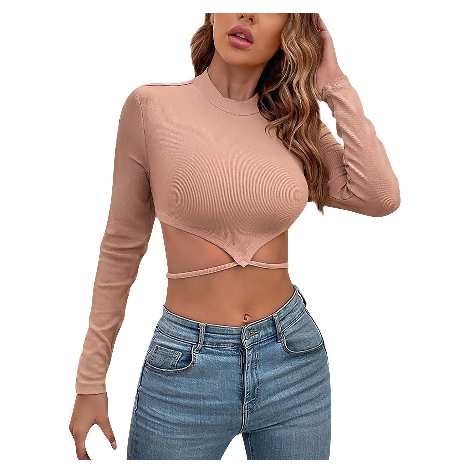 (SU)Женская осенне-зимняя мода Slim Fit ультра короткая маленькая водолазка вязаный топ с длинными рукавами