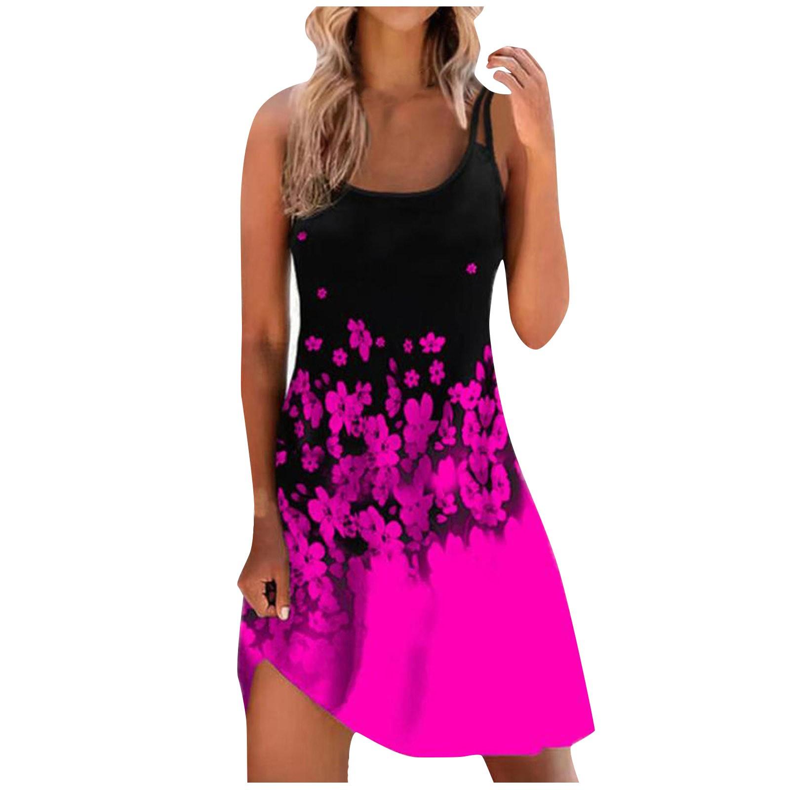 (SU)Женское весенне-летнее сексуальное платье на подтяжках без рукавов с открытой спиной и принтом