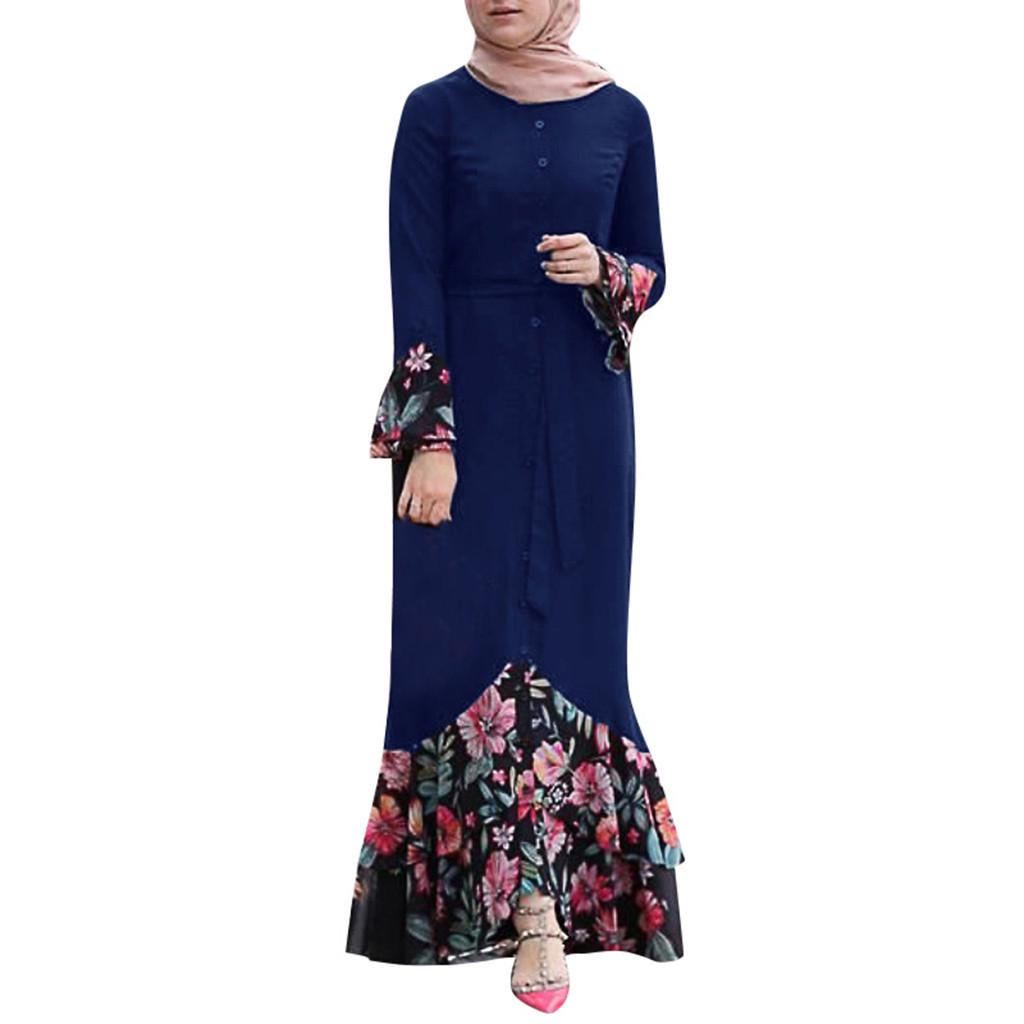 (SU)Женское длинное коктейльное мусульманское длинное платье с цветочным принтом, вечерняя исламская одежда Абая