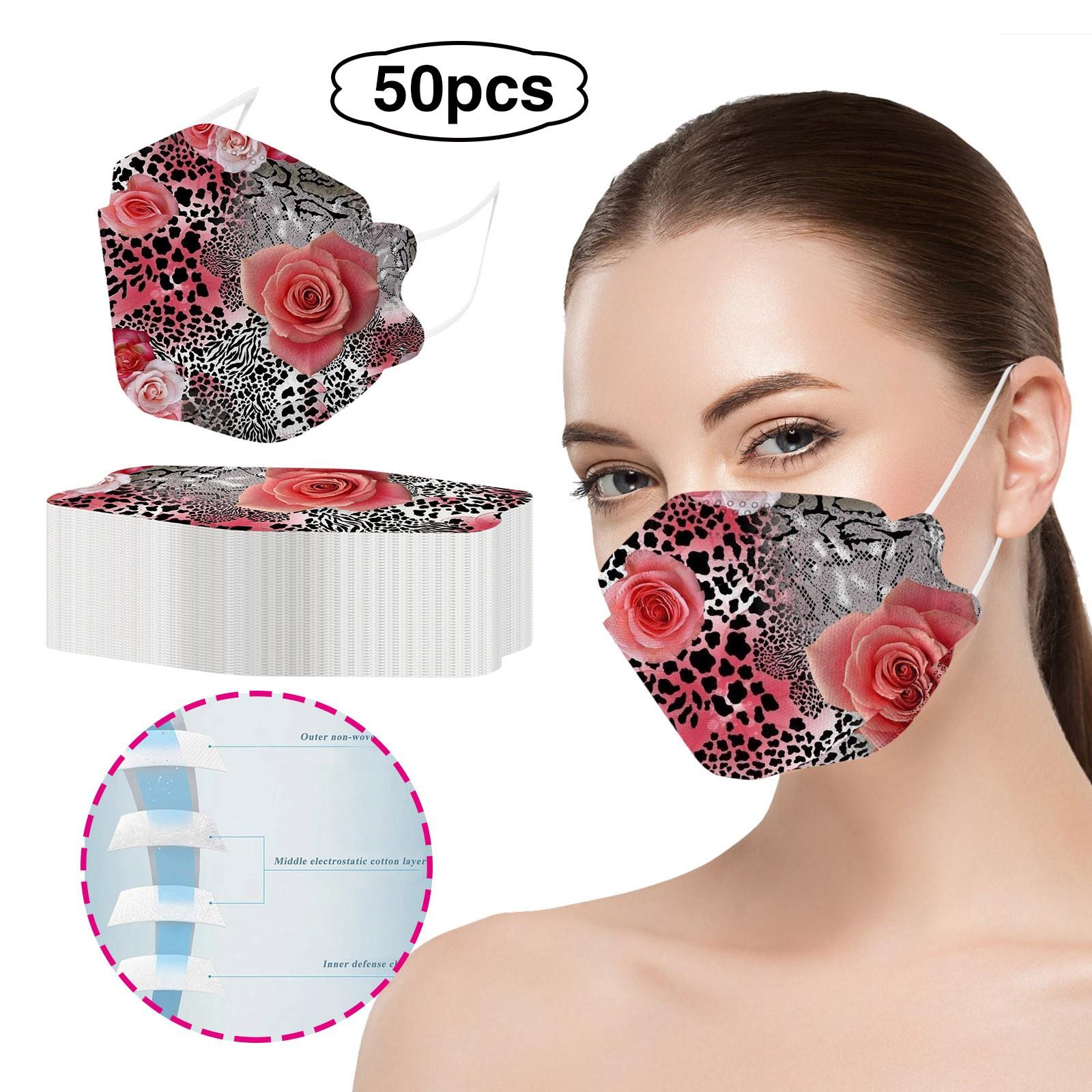 (SU)50 шт., защитная маска для лица с леопардовыми цветами для взрослых, наружная профилактическая рыбная маска для лица
