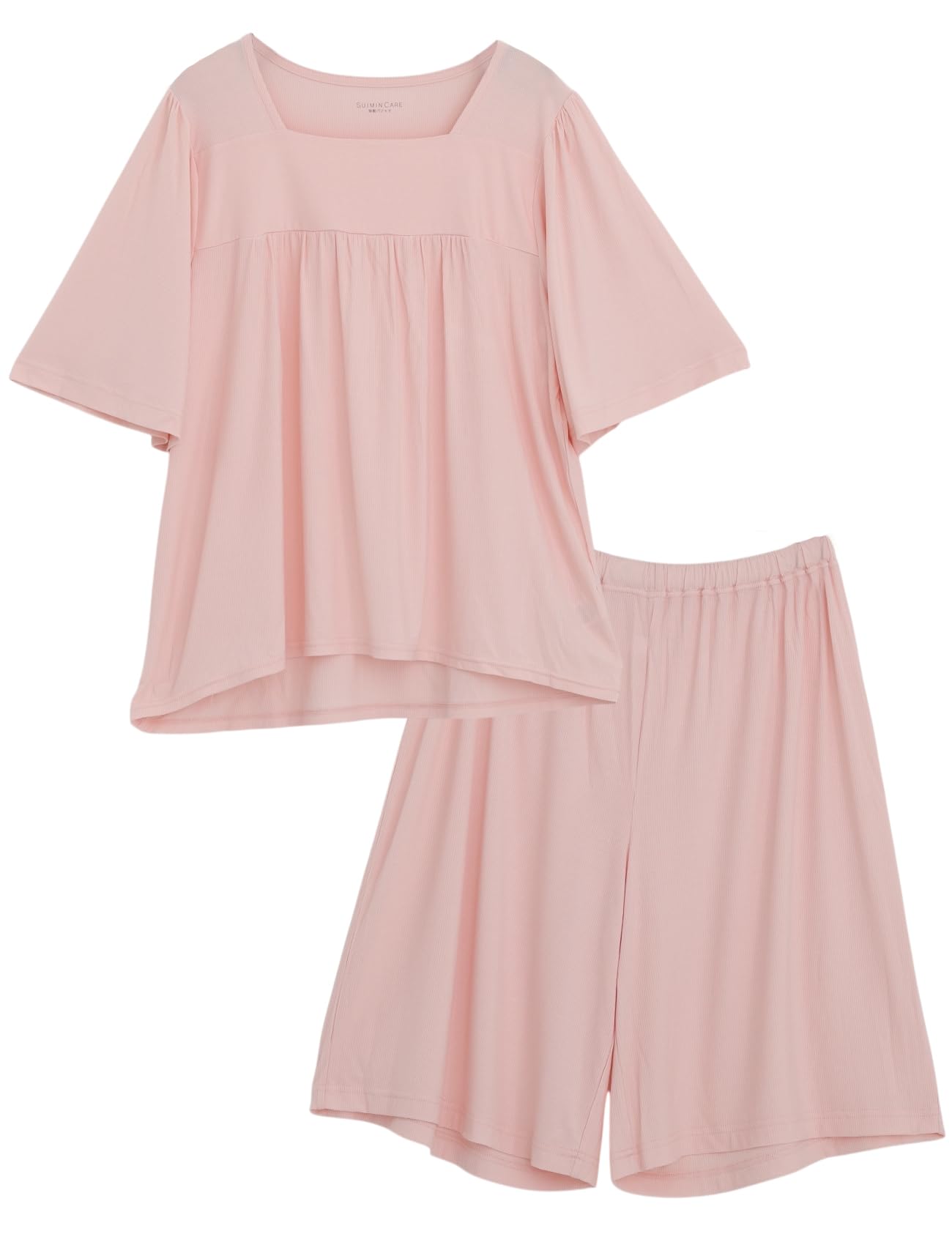 SUIMIN CARE Женская пижама в рубчик, с короткими рукавами и шортами, летняя, розовая и зеленая, размеры S, M, L и LL (L, Розовый)