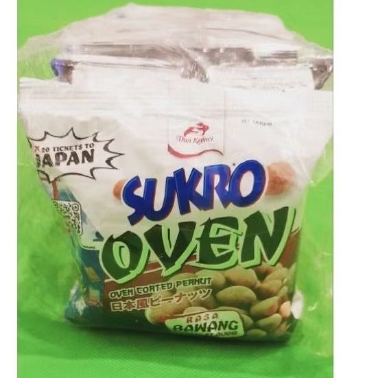 MENJUAL SUKRO OVEN 1 RENTENG ISI 10 PCS , SUKRO OVEN BERUPA KACANG ATOM DENGAN RASA BEGITU GURIH DAN LEZAT