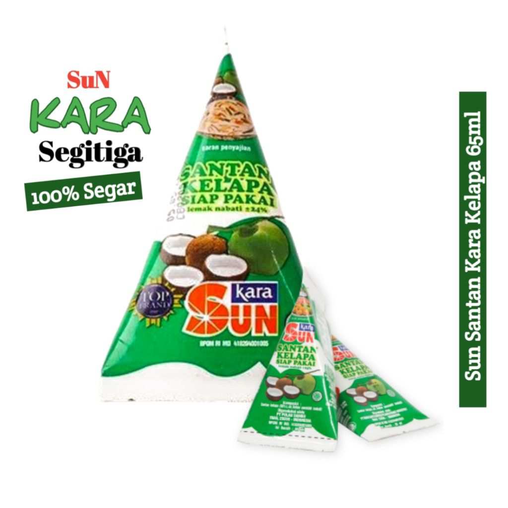 SUN KARA SEGITIGA 65ML : Dengan teknologi mutakhir, KARA menghadirkan krim kelapa yang diproses secara UHT dan dikemas secara aseptik dalam kemasan yang praktis. Produk ini menncapai kualitas makanan yang tinggi, tanpa mengorbankan kebutuhan Anda akan rasa alami dan kualitas krim kelapa segar. keaslian santan terjaga dengan baik, serta membuatnya tahan disimpan dalam waktu lama di dalam kulkas. Mengandung lemak nabati kurang lebih 25%, juga dibuat tanpa pengawet sehingga aman digunakan