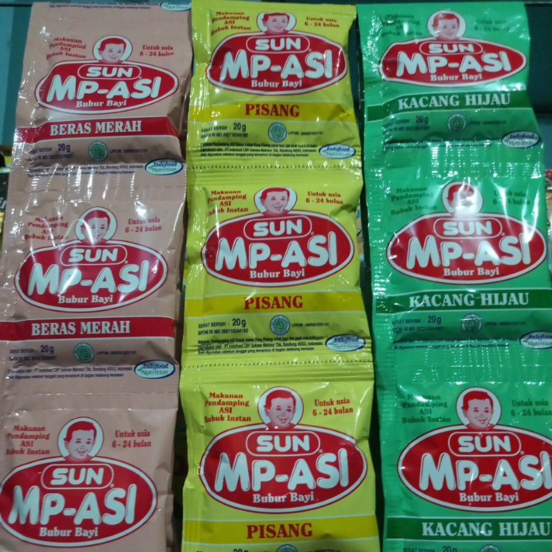 Bubur bayi Sun MP-Asi , rasa Beras Merah, Kacang Hijau dan Rasa Pisang, exp 2023