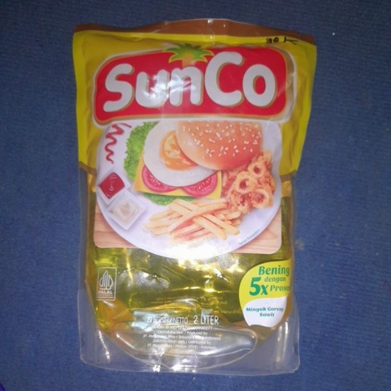 SunCo Minyak Goreng 2 L adalah minyak goreng masak yang diproduksi dari buah kelapa sawit segar pilihan dan difortifikasi dengan vitamin A. Diproses dengan teknologi mutakhir melalui 5 tahap pemrosesan, yakni 3 kali proses pemurnian dan 2 kali proses penyaringan sehingga menghasilkan minyak goreng yang baik dan berkualitas. Adapun ciri minyak goreng yang baik adalah warna minyak yang bening, tidak mudah beku, dan karakternya seperti air. Warna Sunco yang bening dan tidak cepat hitam atau teroksidasi dapat meminimalkan risiko kanker. Berbeda dengan minyak goreng sawit lain, Sunco tidak mudah beku karena mengandung asam lemak jenuh terendah yang dapat meminimalkan peningkatan kolesterol jahat. Tak hanya itu karakter Sunco yang seperti air, tidak lekat, dan tidak menyerap berlebih di makanan, membuat kegiatan makan lebih nyaman tanpa rasa gatal di tenggorokan.