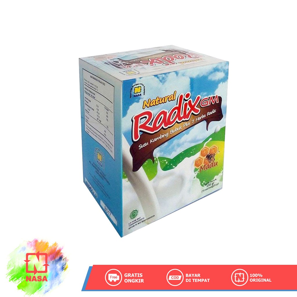 Natural susu kambing RADIK merupakan salah satu produk minuman kesehatan dari NASA berupa produk susu kambing bubuk plus krim nabati. Susu Radik ini diproses secara organik tanpa bahan pengawet, tanpa pemanis buatan dengan pelengkap madu alami.