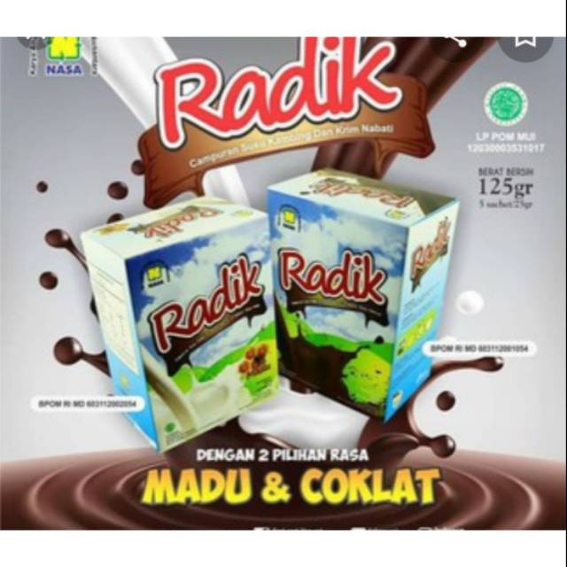 Susu Radix Coklat merupakan salah satu produk NASA terbaru tahun 2013 berupa produk susu kambing bubuk plus 7 Herba Radix. Susu Radix Coklat diproses secara organik tanpa bahan pengawet, tanpa pemanis buatan dengan pelengkap madu alami. Susu Radix Coklat mempunyai sifat antiseptik alami yang membantu menekan pembiakan bakteri dalam tubuh. Protein lembut dan efek laktasenya ringan, sehingga tidak menyebabkan diare. Lemaknya mudah dicerna karena mempunyai tekstur yang lembut, halus dan lebih kecil dibandingkan dengan susu sapi. Susu Radix Coklat bersifat homogen alami sehingga mempermudah dicerna untuk menekan timbulnya reaksi-reaksi alergi. Susu Radix Coklat juga bersifat basa (Alkaline Food) sehingga baik untuk membantu menetralisir asam lambung bagi penderita maag. Susu Radix Coklat baik dikonsumsi oleh penderita asma, flek, bronchitis, TBC serta berbagai macam penyakit paru-paru. Susu kambing etawa diketahui baik bagi kecerdasan anak dan kandungan kalsium yang tinggi baik juga untuk penderita Osteoporosis. Susu Radix Coklat diformulasikan spesial dibandingkan susu kambing etawa bubuk di pasaran pada umumnya karena : 1. Kandungan/konsentrat susu kambing etawa yang lebih tinggi (5lt/kg bubuk). 2. Dilengkapi 7 jenis kandungan herba radix (Tongkat Ali, Teja Lawang, Mengkudu Hutan, Halban, Larak Hutan, Mata, Peladuk, Tebu Gajah). 3. Dilengkapi madu alami. 4. Pembudidayaan kambing etawa secara organic. 5. Tanpa pengawet dan pemanis buatan.