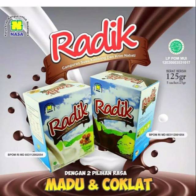 Natural Radik merupakan salah satu produk minuman kesehatan dari NASA berupa produk susu kambing bubuk plus krim nabati. Susu Radik ini diproses secara organik tanpa bahan pengawet, tanpa pemanis buatan dengan pelengkap madu alami.