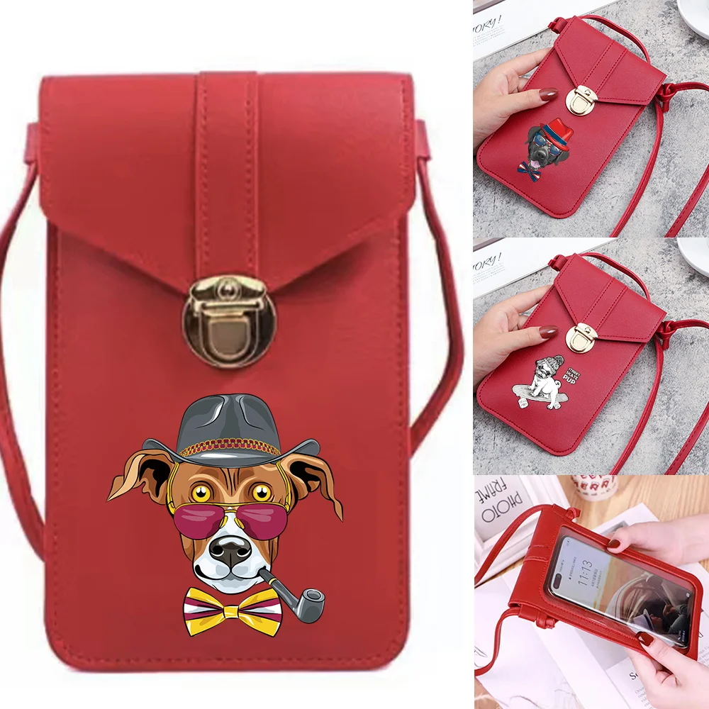 Модная сумка на плечо для сотового телефона с сенсорным экраном, миниатюрные сумки через плечо, кожаный кошелек для мобильного телефона с милым принтом собаки, кошельки для монет, сумки для женщин