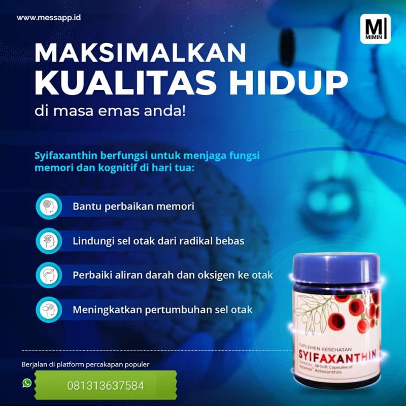 Syifaxanthin Ini produk suplement kesehatan dengan HiGH ANTI OKSIDANT yang dikemas dalam softgel dengan teknologi terbaru (kecil dan mudah diminum).