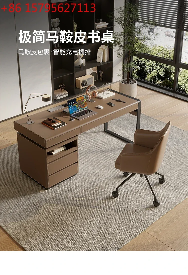 Saddle Leather Desk Home Study Office Computer Desk Italian Simple Computer Study Table
