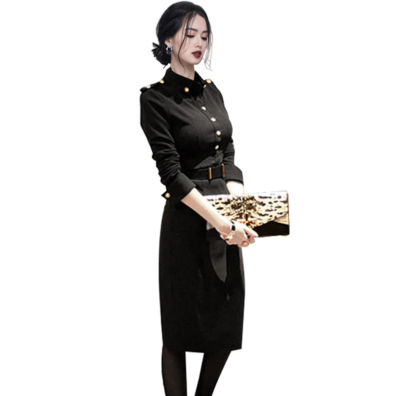 Женское обтягивающее платье, черное, Осеннее, официальное, сексуальное, с длинным рукавом, стойка, кабаре, для вечерние, для офиса