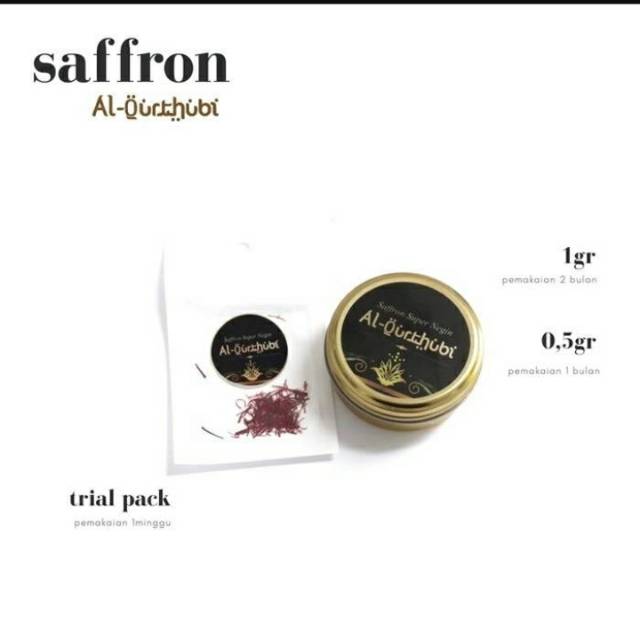 Apa itu Saffron- Saffron adalah rempah dari putik Bunga Crocus Sativus yang berasal dari daerah Khurasan yang sudah dimanfaatkan sejak ratusan tahun lalu sebagai campuran minuman dan bumbu masakan, seperti nasi, kari dam dessert. Dengan sejuta khasiatnya saffron menjadi salah satu HERBAL TERMAHAL DI DUNIA. Beberapa negara penghasil saffron adalah Iran, Kashimir, Spanyol, Yunani dan Afghanistan. Produk kami adalah saffron asli berasal Afghanistan. - Cara Konsumsi: 1. Siapkan air hangat kuku (bukan air panas) 300-500 ml lalu masukan 3-5 helai saffron saja. 2. Tunggu selama kurang lebih 30 menit. Jika menggunakan air dengan suhu normal maka diamkan selama 6 jam. 3. Saffron dapat diminum setelah warna air berubah perlahan menjadi kuning keemasan. FAQ SAFFRON AL QURTHUBI Apakah ada batas maksimal menkonsumsi saffron? - Untuk menjaga kesehatan cukup 1x sehari 3-5 helai saja. Bagi yang sedang dalam keadaan sakit atau dalam masa pemulihan bisa 2x sehari. Saffron dikonsumsi maksimal 10 putik saja dalam sehari. Amankah jika dikonsumsi dengan obat kimia? - Aman dan tidak ada efek sampingnya. Apakah Ibu hamil boleh mengkonsumsi saffron? - Boleh, ketika memasuki trimester ke dua kehamilan. Apakah aman bagi ibu menyusui? - Sangat aman dan dapat menambah kuantitas ASI. Apakah anak-anak boleh mengkonsumsi Saffron? Jika boleh Dari usia berapa tahun? - Boleh. Saffron dapat dikonsumsi anak-anak di atas satu tahun. Bolehkah saffron dicampur dengan madu? - Sangat boleh, selama madu yang dipakai adalah madu murni. Saffron tahan berapa lama? - saffron tahan selama 2 tahun jika disimpan dengan baik. Bagaimana cara menyimpan saffron yg baik? - Disimpan di wadah tertutup, kering dan sejuk. Agar warna saffron tahan lama maka simpan di tempat kedap cahaya. - Khasiat Saffron 1. Kaya akan antioksidan 2. Mengatasi hipertensi 3. Bersifat anti kanker 4. Mengatasi gangguan sistem pencernaan 5. Meningkatkan mood 6. Mencegah stress dan insomnia 7.Menurunkan kadar kolestrol dalam darah 8. Menguatkan sistem imun 9. Mencegah serangan jantung 10. Mengurangi sakit pada PMS