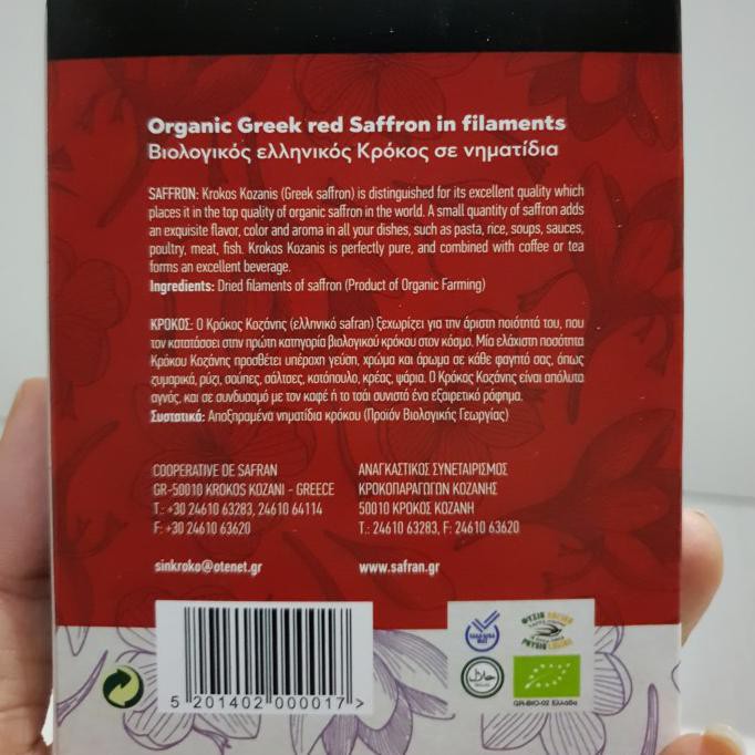 Saffron ini asli dari Yunani yang merupakan asal dari saffron, kualitas yang terbaik, dan saffron kami sudah ada sertifikasi organik.