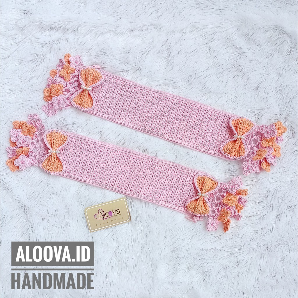 Handle cover rajut berbentuk bunga sakura untuk melindungi handle tas dari kotoran.