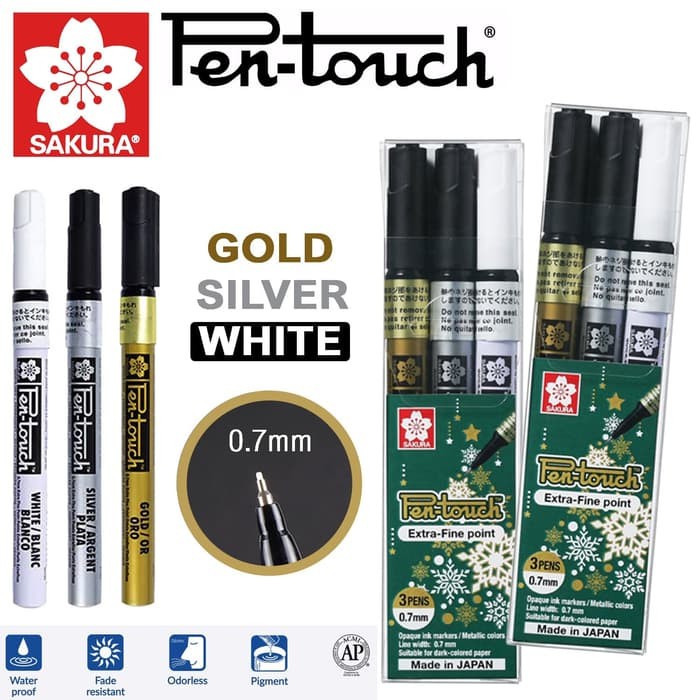EXTRA FINE 0.7mm terdiri dari 3 warna : GOLD , SILVER , WHITE