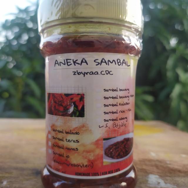 Sambal Bajak 100% Homemade non MSG di racik dengan bahan bahan pilihan dan berkualitas kemasan botol 150gr. Isi nett 125gr. Komposisi : cabe, bawang, garam, gula dll.