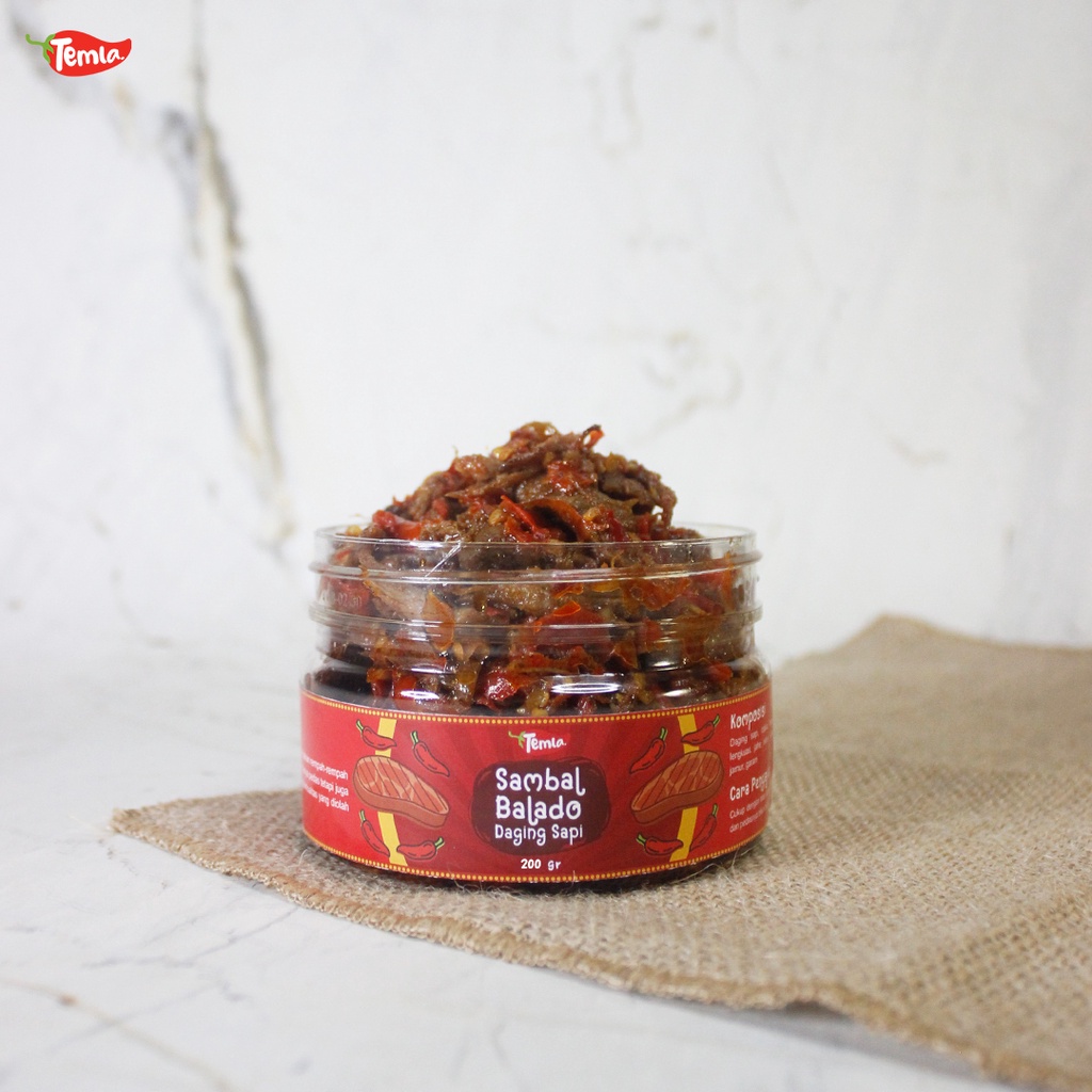 Balado Daging Temla dibuat dari daging sapi premium berkualitas yang dipadu dengan olahan rempah-rempah nusantara dan racikan bumbu resep warisan dari Padang. Balado Daging Temla rasanya lezat karena terbuat dari bahan-bahan pilihan, segar dan berkualitas yang diolah secara tradisional.