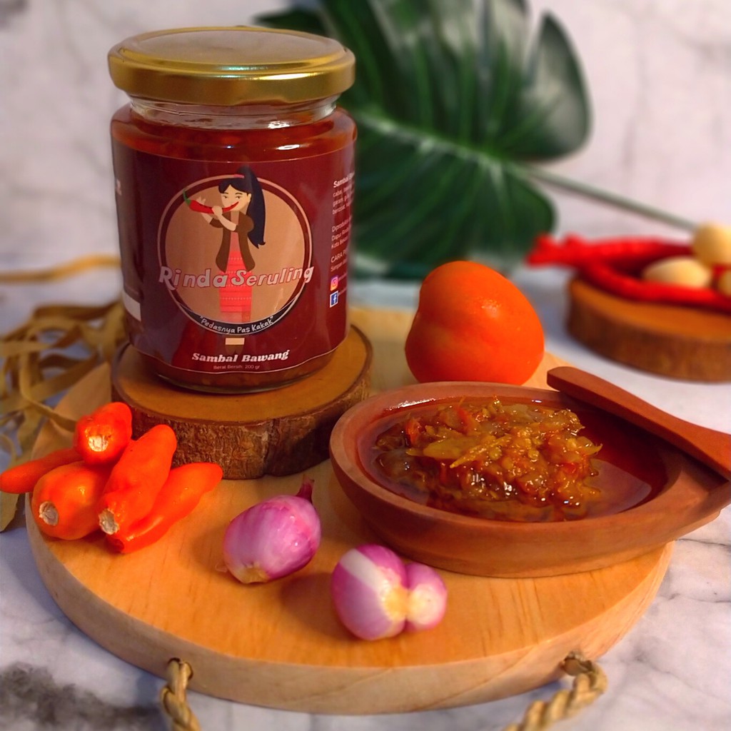 Semua produk sambal dari Rinda Seruling adalah buatan sendiri (homemade). Sambal bawang memiliki cita rasa pedas dan gurih dan cocok di santap dengan menu makanan sehari-hari. Sambal bawang juga dapat di gunakan sebagai bahan dasar beraneka macam masakan rumahan
