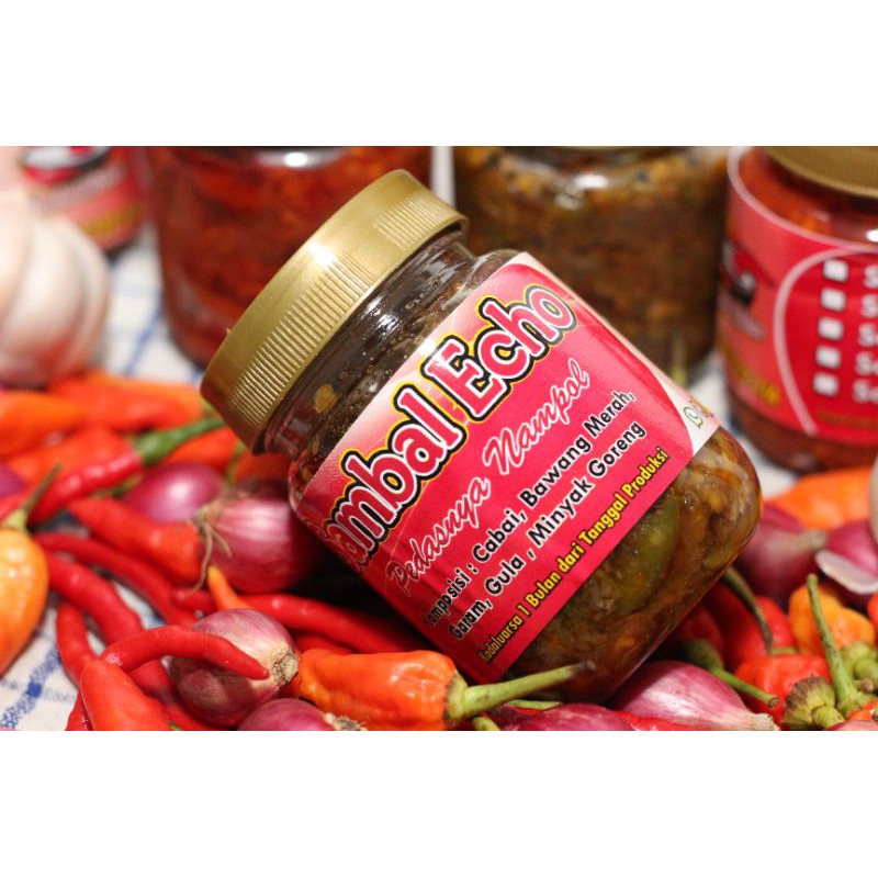 Menyediakan Sambal kemasan botol yang praktis dan higenis tanpa bahan pengawet yang bercita rasa ECHO PEDES NAMPOLL PISAN. Foto hanya Mewakili produk tersebut