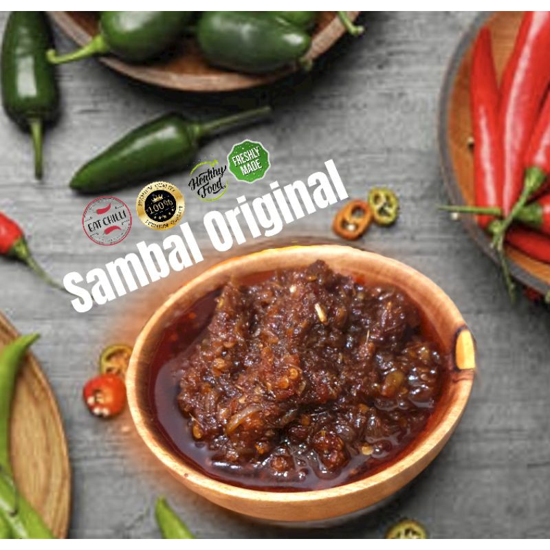 Sambal Original ini merupakan sambal premiun dan dibuat dengan bahan-bahan dasar yang berkualitas sehingga menghasilkan rasa yang khas. Tidak seperti sambal pada umumnya, sambal ini akan meninggalkan rasa yang tak terlupakan ketika kamu memakannya ( ga pake bohong say....). Perpaduan rasa manis, pedas, gurih dan segar sangat cocok dipadukan dengan berbagai macam makanan seperti nasi putih, mie kosong, roti, dll. Dapat juga digunakan sebagai bumbu inti berbagai masakan. Dijamin masakan kamu jadi enak.