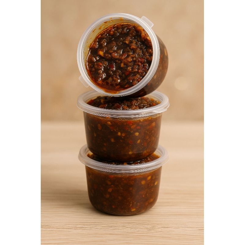 Sambal Rujak Homemade kami dibuat dari bahan-bahan segar pilihan seperti cabai rawit merah, kacang tanah, gula merah, asam jawa, dan sedikit garam. Cocok untuk cocolan buah segar, gorengan, hingga pelengkap hidangan harian