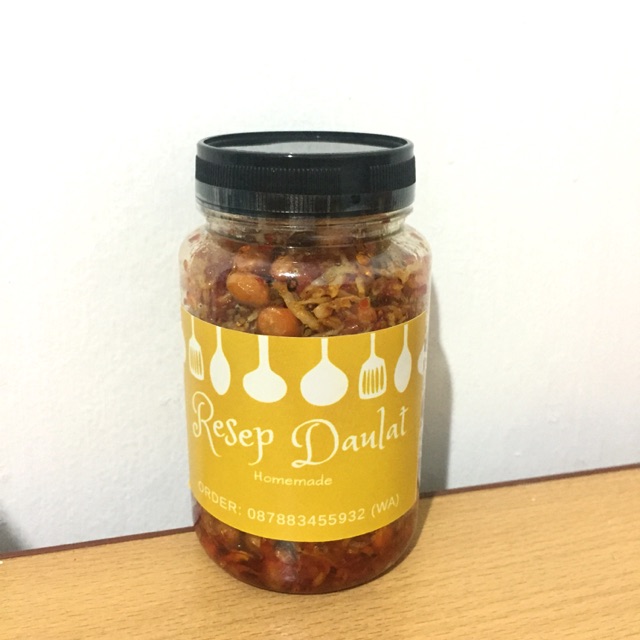 Teri Medan kualitas No.1 (50%), kacang tanah (40%), bumbu (cabai,bawang merah, bawang putih dll) (10%)