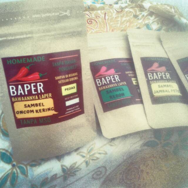 Sambel baper oncom kering terbuat dari bahan bahan pilihan dan tidak menggunakan msg serta tanpa bahan pengawet