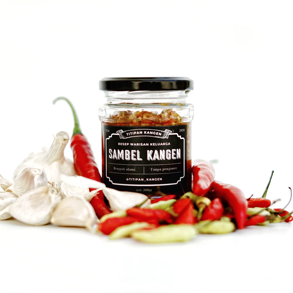 Sambel kangen ini merupakan sambal kreasi pertama dari Titipan Kangen. Terbuat dari rempah alami dan tanpa bahan pengawet. Sambel kangen cocok untuk dipadukan dengan apa saja, termasuk hanya dengan telor mata sapi dan tahu tempe. Sambel Kangen cocok menjadi teman makanmu ditanggal tua!