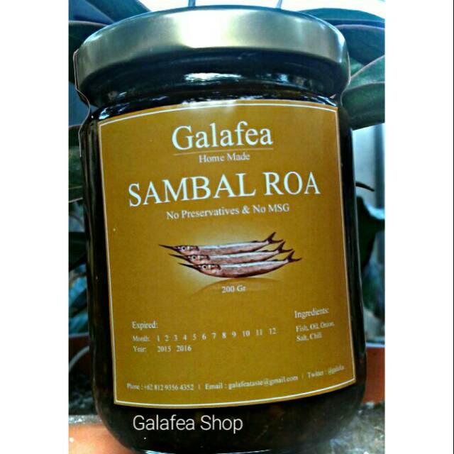 Dibuat dari bahan-bahan pilihan berkwalitas dengan bahan utama Ikan Roa, Cabe dan Bawang Merah. tanpa bahan pengawet dan tidak mengandung MSG. Anda pesan kami buatkan, sehingga produk yang akan diterima pelanggan selalu terbaru.
