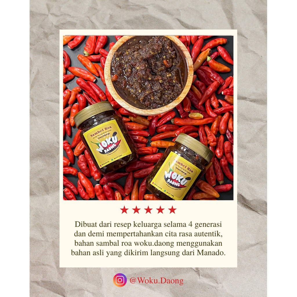sambel roa asli manado, terbuat dari ikan roa kualitas terbaik dan rasa asli sambel roa khas manado