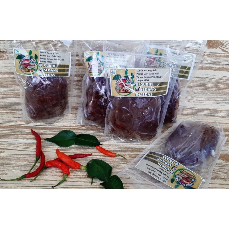 sambel pecel Madiun dengan varian rasa pedas terbuat dari bahan alami tanpa pengawet dan MSG barang akan dikirim setelah selesai pembuatan sekitar 1-3 hari