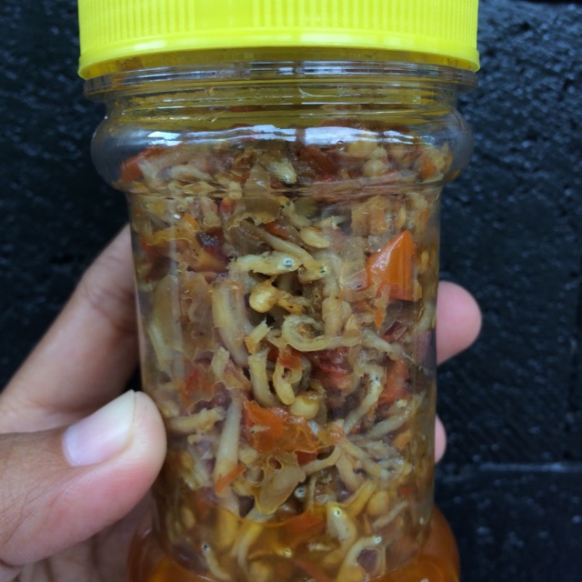 Sambel yang terbuat dari bahan utama berupa ikan teri, cabai rawit, bawang merah, minyak goreng, garam, gula pasir, kaldu jamur. Tanpa pengawet dan penguat rasa (MSG).