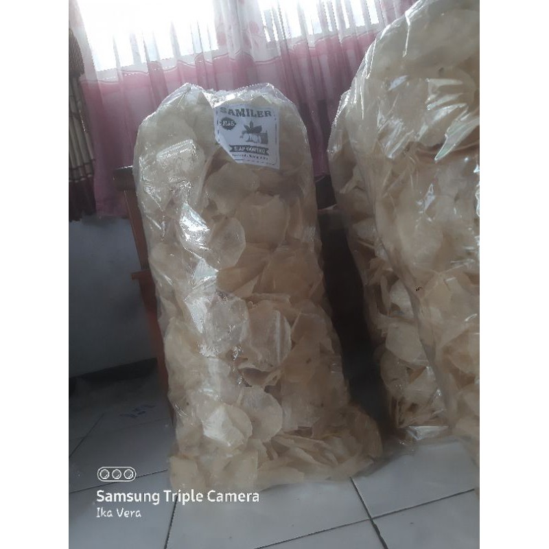 Samiler/opak singkong terbuat dari 100% singkong dan di beri bumbu bawang putih dan penyedap rasa.