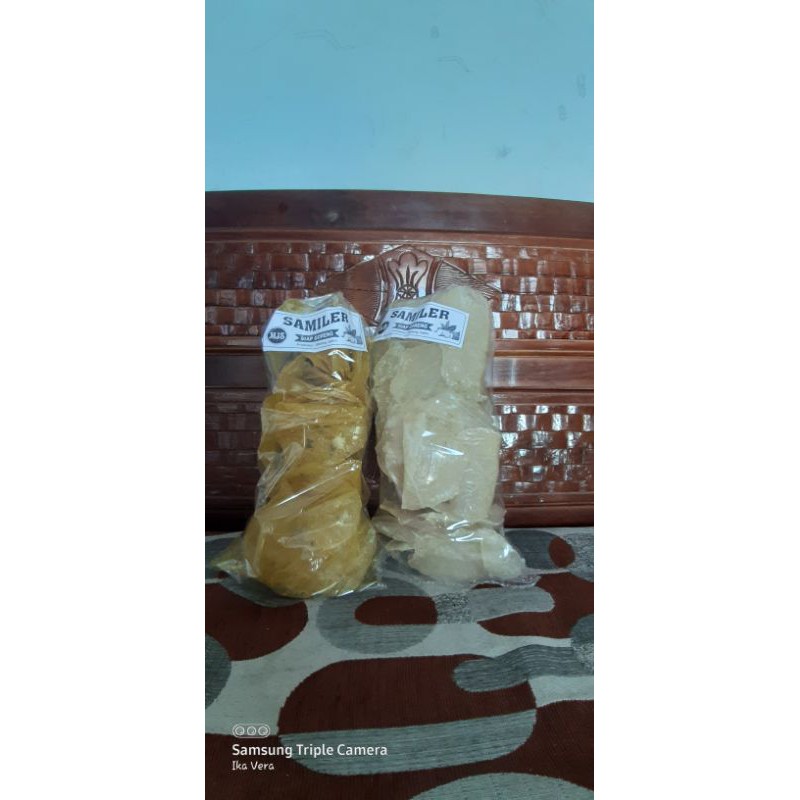 Samiler/opak singkong terbuat dari 100% singkong dan di beri bumbu bawang putih dan penyedap rasa.