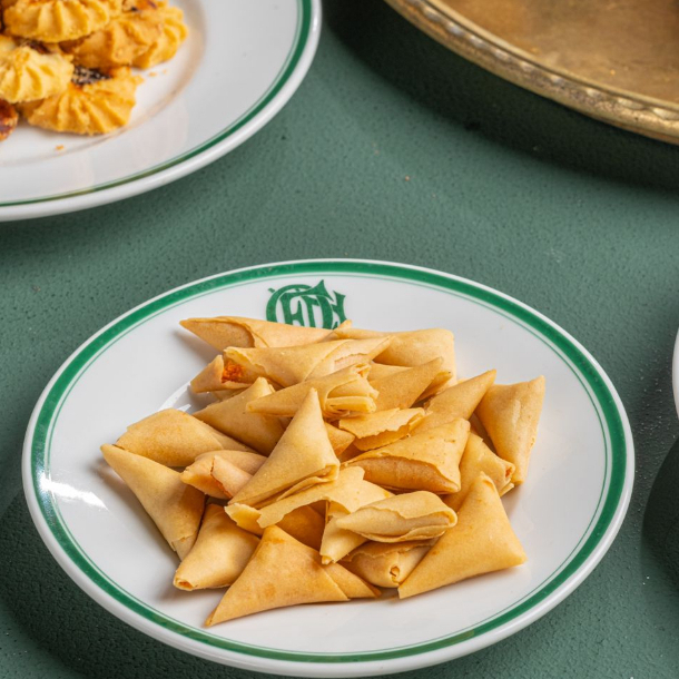 Kue kering yang satu ini bernama samosa , dibuat dari bahan-bahan pilihan berkualitas dengan abon ayam yang khas.Dibalut dengan kulit seperti lumpia yang renyah dan rasanya gurih.