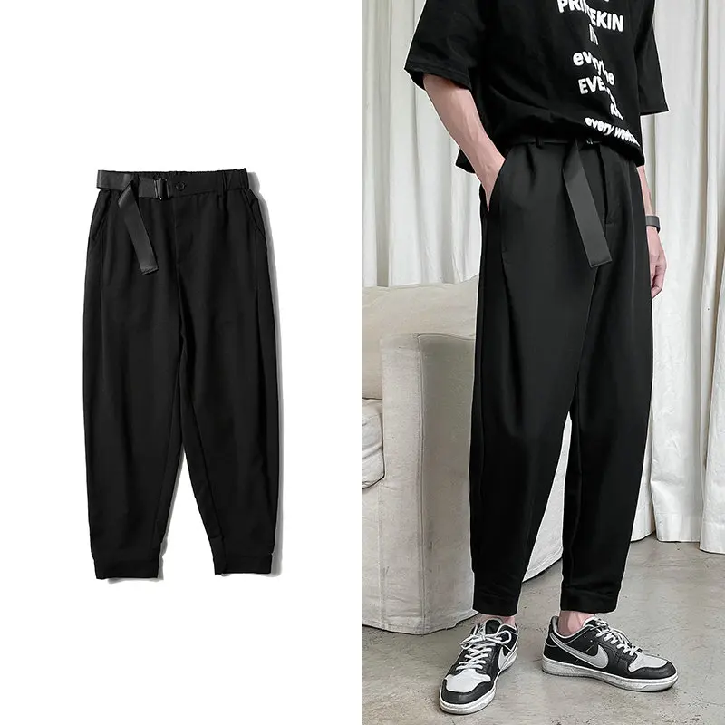 2021 черные однотонные прямые шаровары, корейские мужские свободные до щиколотки, уличная одежда в стиле Харадзюку, женские модные повседнев...