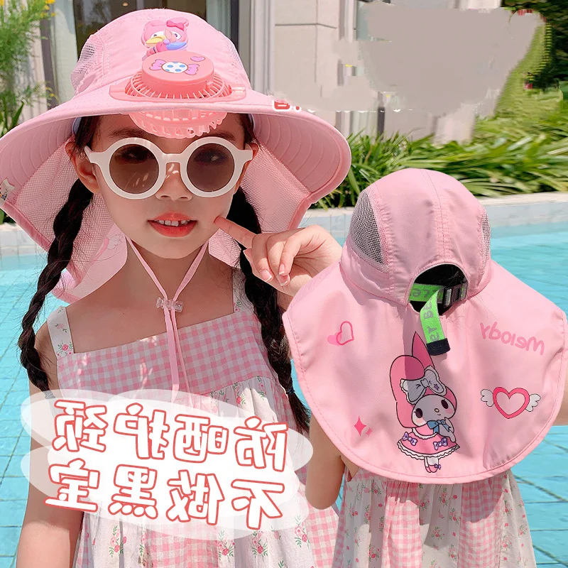 Sanrio Детская многофункциональная кепка с вентилятором, пустые топы, шаль, шляпа от солнца, летняя уличная детская солнцезащитная шляпа с козырьком, мультяшные солнцезащитные шляпы, шляпы