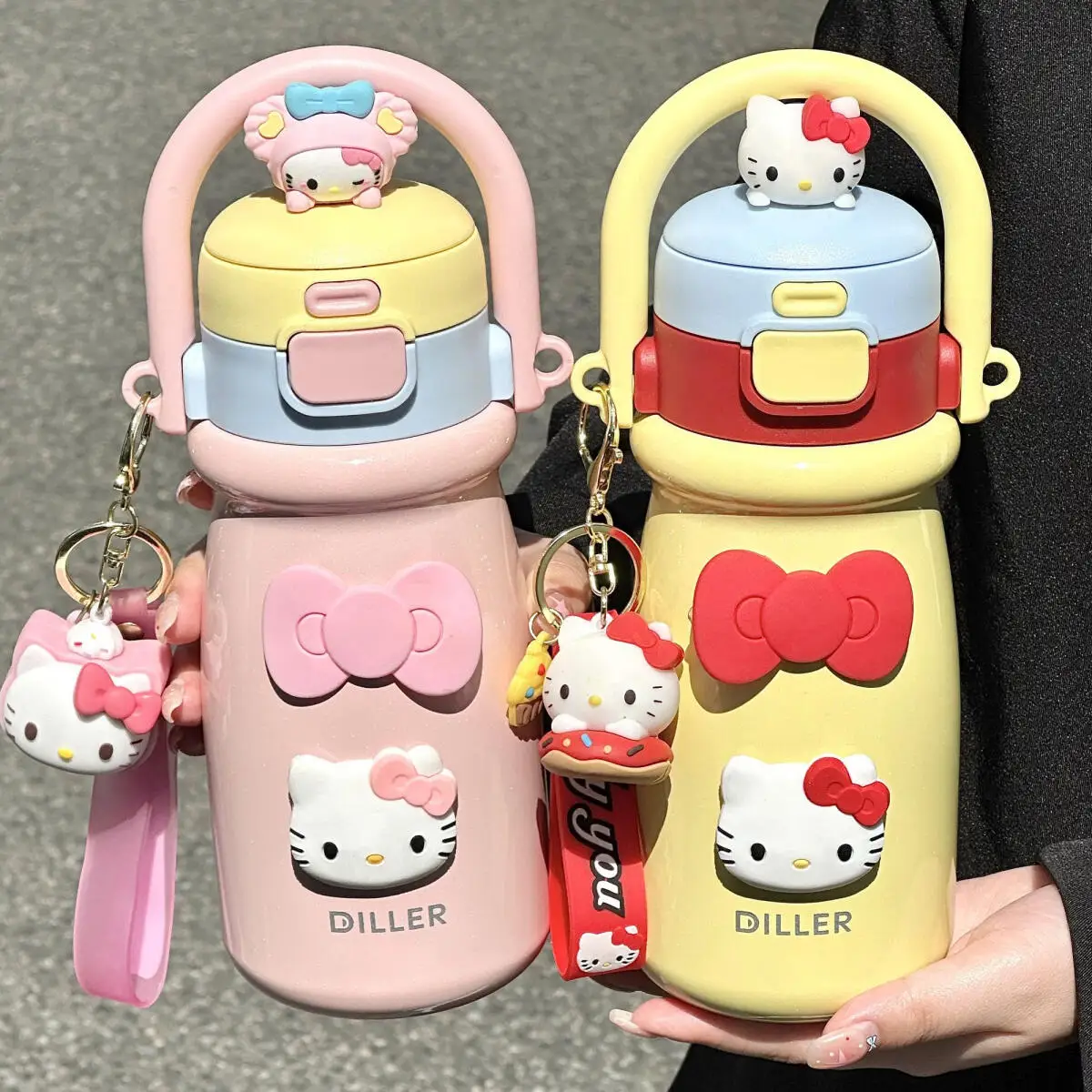 Sanrio Hello Kitty's милая портативная изолированная кружка для девочек, модель большой емкости, мультяшная кофейная чашка через плечо, детский подарок на день рождения