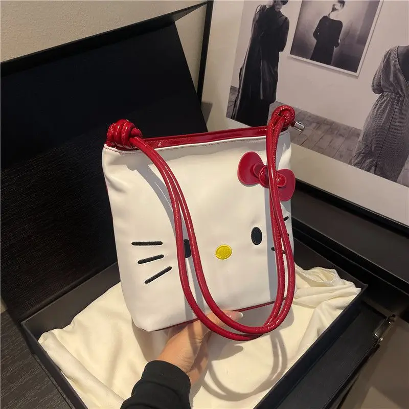 Sanrio Kawaii модная сумка-ведро на одно плечо Hello Kittys для девочек, летняя универсальная милая сумка через плечо с героями мультфильмов большой емкости