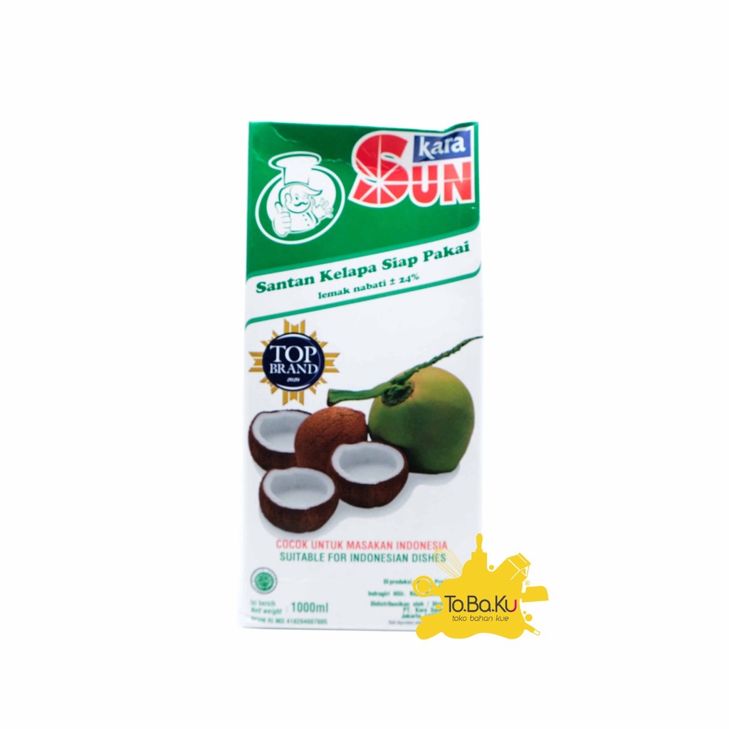 Sun Kara Santan Kelapa siap pakai, mengandung lemak nabati berkisar 24%. Dengan jumlah takaran yang sama akan selalu memberikan cita rasa masakan yang sama, karena kekentalan yang selalu sama dan konsisten.
