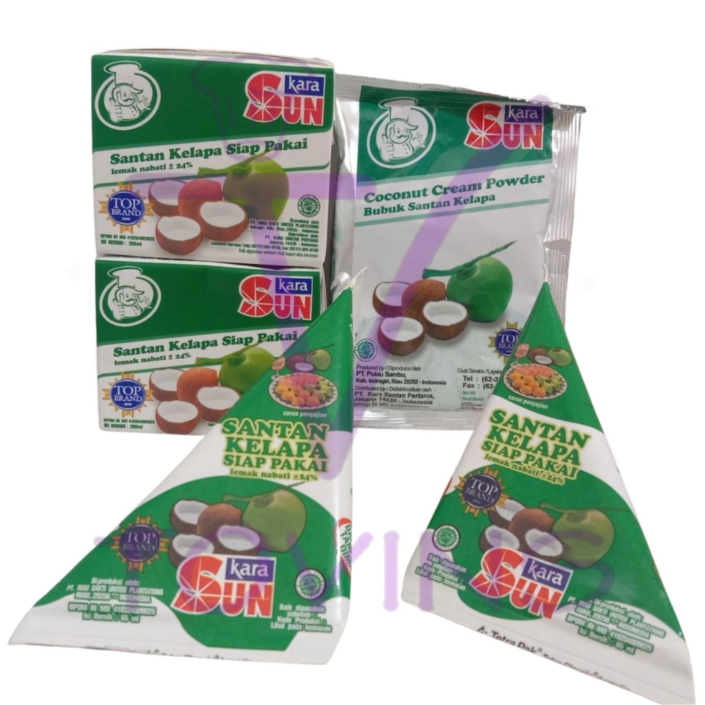 * kara : Dengan teknologi mutakhir, KARA menghadirkan santan yang diproses secara UHT dan dikemas secara aseptik dalam kemasan yang praktis. Produk santan ini telah memenuhi berbagai standar kualitas makanan dengan tetap mempertahankan kesegaran dan rasa alami kelapa.