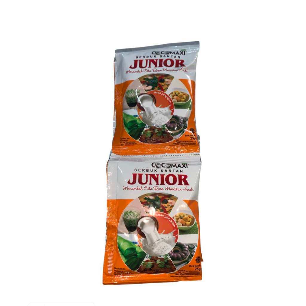 Dibuat dari daging kelapa tua pilihan di Pontianak - Kalimantan Barat yang terkenal dengan aroma natural dan manis, di proses dengan teknologi modern menjadi bubuk, Cocomaxi Junior mudah larut dalam air, jika telah di campur dengan air Cocomaxi Junior akan menjadi cairan santan yang cocok digunakan sebagai Hidangan pembuka dan kue sehingga lebih gurih dan nikmat.