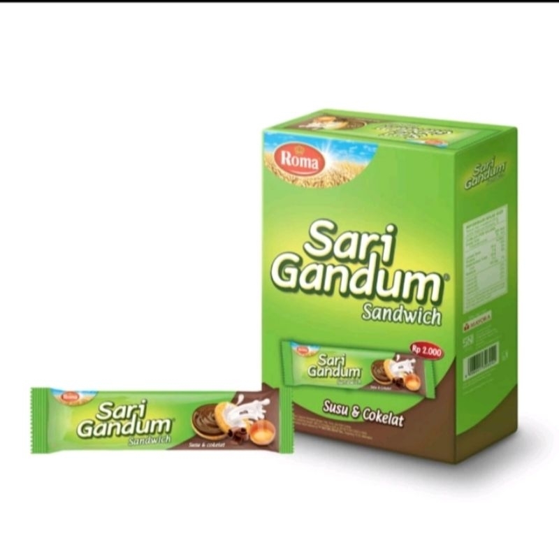 Roma Sari Gandum Cokelat merupakan biskuit Sandwitch yang terbuat dari gandum dan cokelat pilihan. Berat bersih 39 gr/ Sc