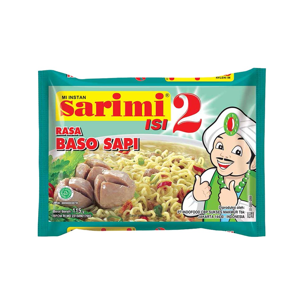 Sarimi Rasa Baso Sapi Isi Dua Mie Instant merupakan mie instant yang memiliki cita rasa gurih dan lezat, membuat siapa saja menyukainya. Dapat pula dikonsumsi setiap saat, kapanpun dan dimanapun, serta aman dikonsumsi. Dengan tekstur yang lembut, kenyal, dan rasa yang gurih. Mudah dibuat, penyajian tidak memakan waktu yang lama.