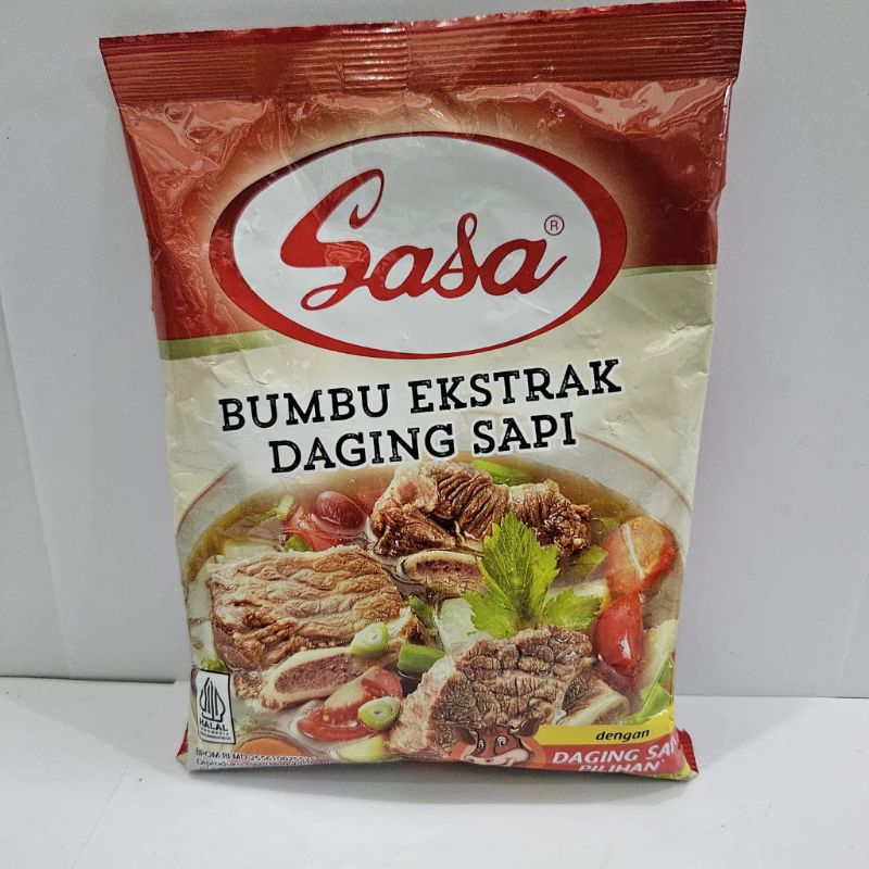 Kami menyediakan bumbu kaldu SASA ekstrak daging sapi.